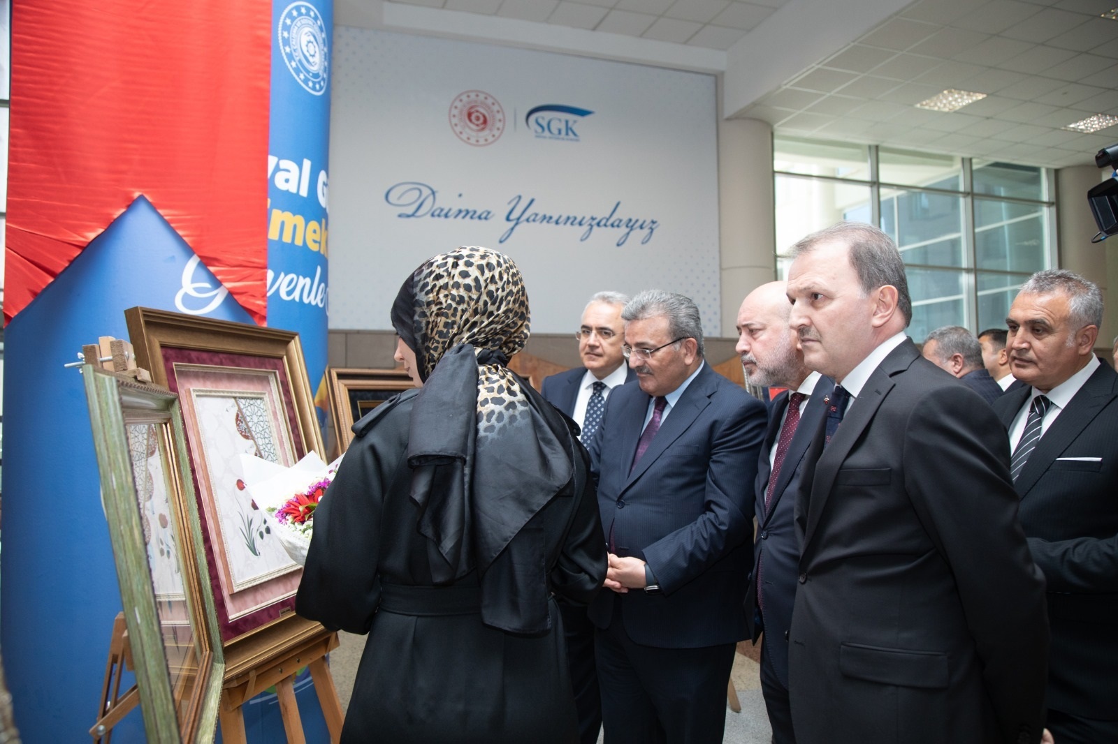 Sosyal Güvenlik Kurumunda (SGK) Sosyal Güvenlik Haftası kapsamında ebru, tezhip, hat ve barok tarzındaki eserleri ile “Türk İslam Sanatları” konulu ve SGK Kreş ve Gündüz Bakımevi çocuklarının hazırladığı “Çocukların Gözünden Sosyal Güvenlik” temalı resim sergileri açıldı.